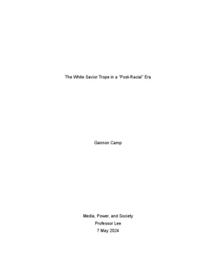 This paper explores how the media's promotion of the white savior trope, particularly following Obama's election, contributed to a false perception among Caucasians that significant racial issues had been resolved, despite evidence to the contrary.