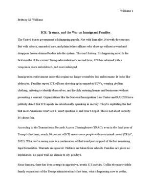 [2025 Honorable Mention] ICE: Trauma, and the War on Immigrant Families