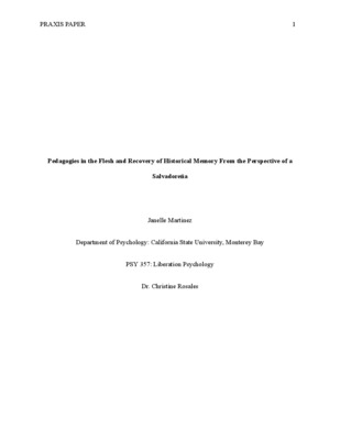 My submission is a praxis paper. First, I explore the concepts and theories I would like to put into praxis, which are pedagogies in the flesh and recovery of historical memory. I then explain how and why I put them into praxis.